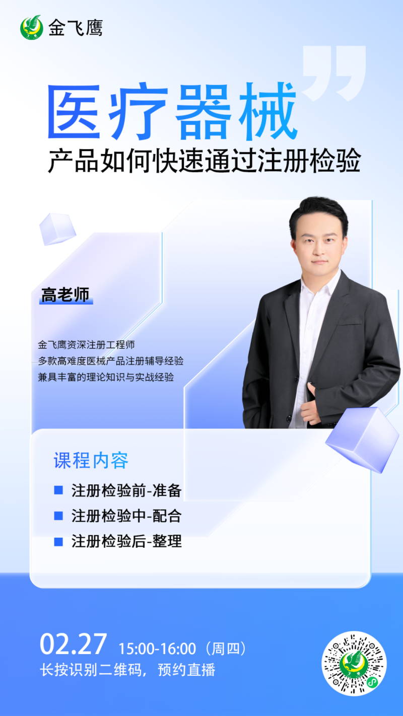 金飛鷹直播培訓,是每周一次的固定培訓欄目,優(yōu)選金飛鷹國內外資深注冊/項目老師定期為大家講解醫(yī)療器械注冊相關知識,解答大家在醫(yī)療器械注冊過程中的諸多疑問。
