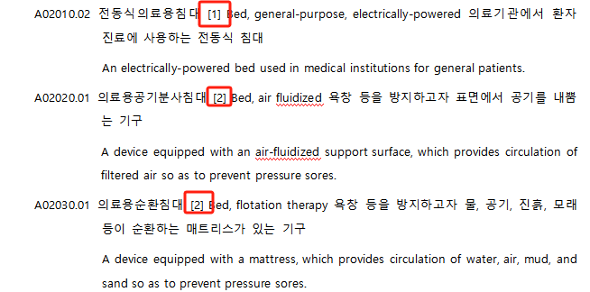 1. 查閱Regulation on Medical Device Groups and Class by Group的Attachment,法規(guī)中規(guī)定了分類規(guī)則以及產(chǎn)品的代碼和風(fēng)險(xiǎn)等級,可以根據(jù)產(chǎn)品定義/用途等判斷產(chǎn)品的等級,我們隨附了示例圖,紅框的數(shù)字為產(chǎn)品的風(fēng)險(xiǎn)等級。 2. 在韓國已注冊產(chǎn)品的數(shù)據(jù)庫(可聯(lián)系我們獲取鏈接)中,用產(chǎn)品名稱(英文/韓文)進(jìn)行檢索,查找類似產(chǎn)品在MFDS中的分類。 上述方法需一并查詢以確定產(chǎn)品在韓國的分類。當(dāng)然,您也可以直接聯(lián)系我們幫您查詢~