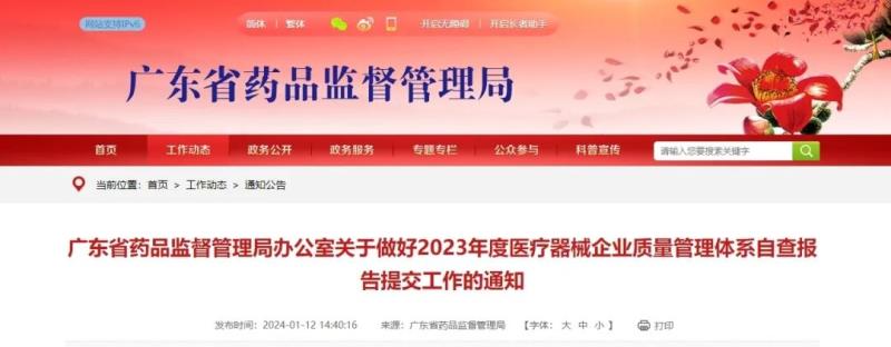 近日,廣東省藥監(jiān)局官網(wǎng)發(fā)布《關(guān)于關(guān)于做好2023年度醫(yī)療器械企業(yè)質(zhì)量管理體系自查報(bào)告提交工作的通知》,有關(guān)事項(xiàng)如下: