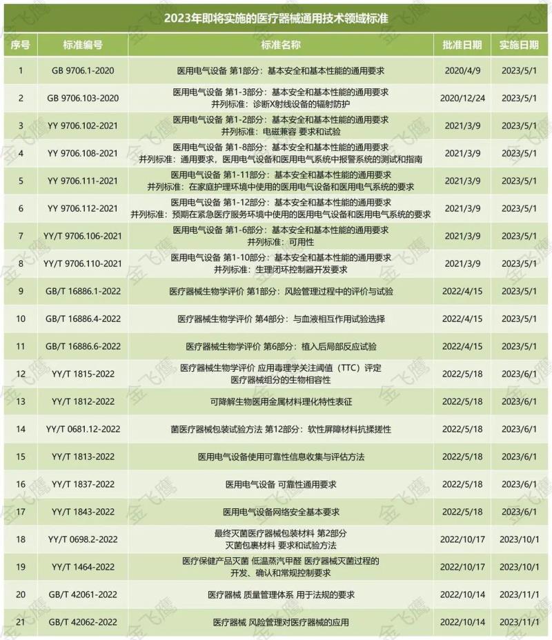 由于行業(yè)發(fā)展的需要及監(jiān)管工作需求,各項標(biāo)準(zhǔn)也在不斷修訂中,比如我們經(jīng)常跟大家講的新版GB 9706系列標(biāo)準(zhǔn),還有新版生物學(xué)評價GB/T 16866系列標(biāo)準(zhǔn),都將于2023年5月1日起正式實施,除此之外還有6月1日及10月1日起實施的相關(guān)標(biāo)準(zhǔn),那么今天我們就把2023年即將實施的醫(yī)療器械通用技術(shù)領(lǐng)域相關(guān)標(biāo)準(zhǔn)做了一個匯總(包括強制性標(biāo)準(zhǔn)和推薦性標(biāo)準(zhǔn)),大家記得收藏備用哦!
