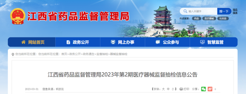 近日,江西省藥品監(jiān)管局發(fā)布2023年第2期醫(yī)療器械監(jiān)督抽檢信息公告。此次共檢出12批次不合格產(chǎn)品,涉及:標(biāo)稱深圳樂(lè)普智能醫(yī)療器械有限公司生產(chǎn)的紅外額溫計(jì)(LFR20B)、標(biāo)稱山東煜和堂藥業(yè)有限公司生產(chǎn)的穴位貼敷治療貼、標(biāo)稱鄭州市慈安堂醫(yī)藥科技有限公司生產(chǎn)的遠(yuǎn)紅外磁療貼等產(chǎn)品,具體如下: