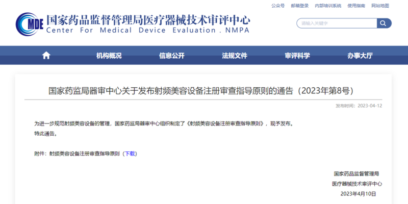 4月12日,國(guó)家藥監(jiān)局器審中心在原有征求意見(jiàn)稿基礎(chǔ)上正式發(fā)布《射頻美容設(shè)備注冊(cè)審查指導(dǎo)原則》,我們將部分重點(diǎn)內(nèi)容摘錄如下: