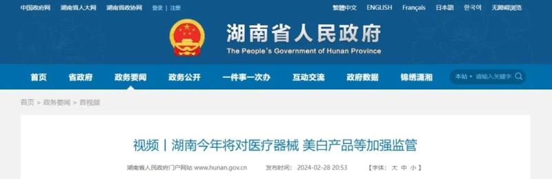2月28日,湖南省人民政府發(fā)布一則視頻,其中提到,據(jù)湖南省藥品監(jiān)管局發(fā)布,今年(2024年),全省藥品監(jiān)管部門將聚焦突出問題和薄弱環(huán)節(jié),堅持對生化藥品、兒童用藥、防疫用藥、集采中選藥品和醫(yī)療器械、美白產(chǎn)品等重點品種、重點企業(yè)、重點環(huán)節(jié)加強監(jiān)管。