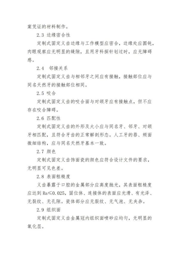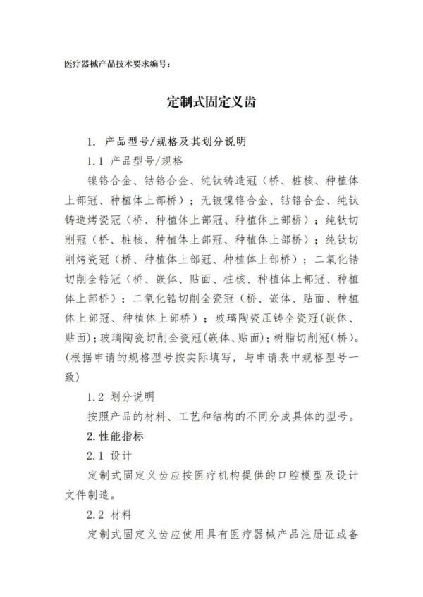 近日,山西省藥監(jiān)局發(fā)布《定制式義齒首次注冊(cè)標(biāo)準(zhǔn)化申報(bào)資料(征求意見(jiàn))》,共包括《定制式義齒首次注冊(cè)申報(bào)資料要求及說(shuō)明》《定制式義齒符合性聲明產(chǎn)品風(fēng)險(xiǎn)管理資料》《醫(yī)療器械安全和性能基本原則清單》《定制式固定義齒產(chǎn)品技術(shù)要求》《定制式活動(dòng)義齒產(chǎn)品技術(shù)要求》《定制式固定義齒說(shuō)明書和最小銷售單元標(biāo)簽樣稿》《定制式活動(dòng)義齒說(shuō)明書和最小銷售單元標(biāo)簽樣稿》8份附件,我們將其中定制式固定義齒產(chǎn)品技術(shù)要求》轉(zhuǎn)載如下,以供相關(guān)企業(yè)參考: