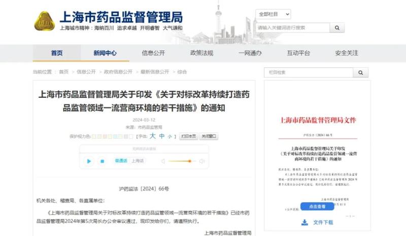 3月12日,上海市藥監(jiān)局發(fā)布《關(guān)于對標(biāo)改革持續(xù)打造藥品監(jiān)管領(lǐng)域一流營商環(huán)境的若干措施》(以下簡稱《若干措施》),共制定了17條舉措,助力生物醫(yī)藥產(chǎn)業(yè)高質(zhì)量發(fā)展。
