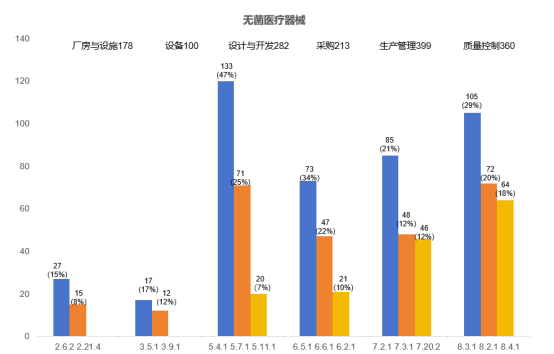 近日,“上海器審”公眾號(hào)公開了上海市2023年度無菌醫(yī)療器械現(xiàn)場檢查問題匯總及分析,其中提到,2023年度,上海市無菌醫(yī)療器械現(xiàn)場核查合計(jì)發(fā)現(xiàn)缺陷1666項(xiàng)。其中廠房與設(shè)施(178項(xiàng)次)、設(shè)備(100項(xiàng)次)、設(shè)計(jì)開發(fā)(282項(xiàng)次)、采購(213項(xiàng)次)、生產(chǎn)管理(399項(xiàng)次)、質(zhì)量控制(360項(xiàng)次)占比超九成,本期文章我們將上海器審總結(jié)的這六個(gè)方面的關(guān)鍵風(fēng)險(xiǎn)點(diǎn)及常見核查問題進(jìn)行轉(zhuǎn)載,以供相關(guān)企業(yè)參考。