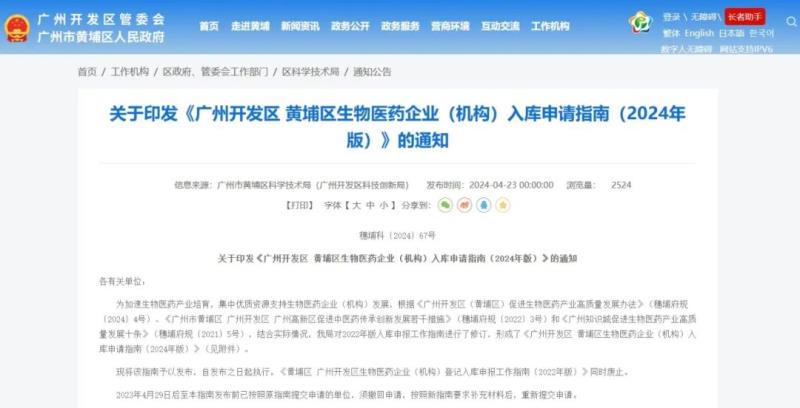 近日,廣州市黃埔區(qū)人民政府發(fā)布《廣州開發(fā)區(qū) 黃埔區(qū)生物醫(yī)藥企業(yè)(機(jī)構(gòu))入庫申請指南(2024年版)》,其中提到,申請單位應(yīng)符合以下條件: