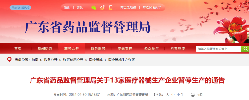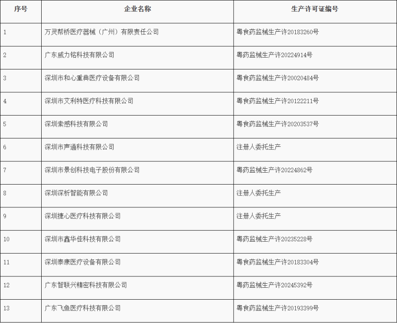近期,廣東省藥品監(jiān)督管理局組織開展醫(yī)療器械生產(chǎn)企業(yè)監(jiān)督檢查,發(fā)現(xiàn)以下13家企業(yè)質(zhì)量管理體系存在嚴(yán)重缺陷,不符合《醫(yī)療器械生產(chǎn)質(zhì)量管理規(guī)范》相關(guān)規(guī)定,廣東省藥品監(jiān)督管理局已依法采取責(zé)令暫停生產(chǎn)的控制措施。