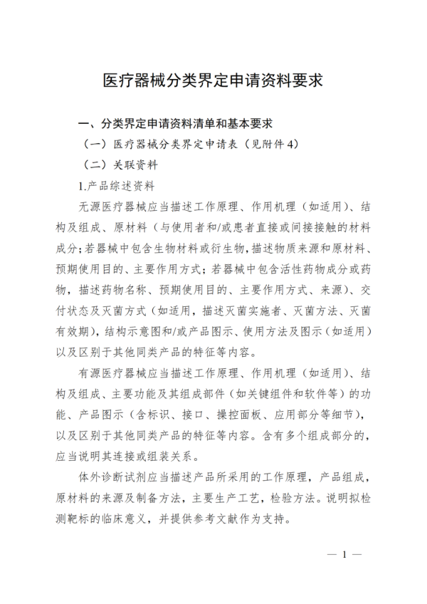 一、關于分類界定工作 (一)藥品監(jiān)督管理部門應當向醫(yī)療器械注冊申請人、備案人等提供醫(yī)療器械分類界定服務。醫(yī)療器械分類界定是藥品監(jiān)督管理部門根據(jù)申請人提供的資料,依據(jù)《醫(yī)療器械監(jiān)督管理條例》(以下簡稱《條例》)《醫(yī)療器械注冊與備案管理辦法》《體外診斷試劑注冊與備案管理辦法》(以下統(tǒng)稱《辦法》)《醫(yī)療器械分類規(guī)則》《體外診斷試劑分類規(guī)則》(以下統(tǒng)稱《分類規(guī)則》)、相關分類界定指導原則及《醫(yī)療器械分類目錄》《第一類醫(yī)療器械產(chǎn)品目錄》《體外診斷試劑分類目錄》(以下統(tǒng)稱《分類目錄》)等,基于現(xiàn)階段科學認知和共識,并參考國際國內(nèi)醫(yī)療器械分類實踐,綜合考慮醫(yī)療器械的預期目的、結(jié)構(gòu)組成、使用方法、工作原理等因素,對醫(yī)療器械風險程度進行評價,判定醫(yī)療器械的管理類別。 (二)申請人應當依據(jù)《條例》《辦法》《分類規(guī)則》、相關分類界定指導原則及《分類目錄》等判定產(chǎn)品管理屬性和類別。對新研制的尚未列入《分類目錄》的醫(yī)療器械,申請人可以直接申請第三類醫(yī)療器械產(chǎn)品注冊,也可以依據(jù)《分類規(guī)則》判斷產(chǎn)品類別并申請分類界定后,申請產(chǎn)品注冊或者辦理產(chǎn)品備案。 對于新研制的尚未列入《分類目錄》的醫(yī)療器械或者管理類別存疑的醫(yī)療器械,需要藥品監(jiān)管部門明確分類界定意見從而申請注冊或者辦理備案的,申請人應當通過分類界定信息系統(tǒng)提出分類界定申請。申請人應當已完成產(chǎn)品的前期研究、具有基本定型產(chǎn)品,并確保分類界定申請資料的合法、真實、準確、完整和可追溯。 新研制的尚未列入《分類目錄》的醫(yī)療器械,是指與《分類目錄》中產(chǎn)品(根據(jù)產(chǎn)品描述、預期用途和品名舉例進行綜合判定)和已上市產(chǎn)品相比,產(chǎn)品的主要原材料、生產(chǎn)工藝、工作原理、結(jié)構(gòu)組成、使用方法、接觸部位及接觸時間、預期目的等均為全新且尚未在我國上市的醫(yī)療器械。 管理類別存疑的醫(yī)療器械,是指同類產(chǎn)品已在我國上市或者已列入《分類目錄》,但與《分類目錄》中同類產(chǎn)品或者已上市同類產(chǎn)品相比,產(chǎn)品的主要原材料、生產(chǎn)工藝、工作原理、結(jié)構(gòu)組成、使用方法、接觸部位及接觸時間、預期目的等發(fā)生了變化,引入了新的風險或者增加了產(chǎn)品風險,可能導致產(chǎn)品分類發(fā)生變化的醫(yī)療器械。 (三)對于新研制的尚未列入《分類目錄》的醫(yī)療器械分類界定申請,申請人在分類界定信息系統(tǒng)中提交至國家藥品監(jiān)督管理局醫(yī)療器械標準管理中心(以下簡稱器械標管中心)。 器械標管中心負責組織研究明確分類界定意見,通過分類界定信息系統(tǒng)將分類界定結(jié)果告知申請人,并及時按照程序調(diào)整《醫(yī)療器械分類目錄》。 (四)對于管理類別存疑的境內(nèi)醫(yī)療器械分類界定申請,申請人在分類界定信息系統(tǒng)中提交至所在地省級藥品監(jiān)督管理部門。省級藥品監(jiān)督管理部門負責對行政區(qū)域內(nèi)申請人提出的產(chǎn)品分類界定申請進行審查,根據(jù)《條例》《分類規(guī)則》、相關分類界定指導原則及《分類目錄》等能夠明確判定產(chǎn)品管理類別的,通過分類界定信息系統(tǒng)將分類界定結(jié)果告知申請人;難以明確判定產(chǎn)品管理類別的,提出預分類界定意見,并通過分類界定信息系統(tǒng)報器械標管中心。 器械標管中心與國家藥品監(jiān)督管理局醫(yī)療器械技術審評中心(以下簡稱國家藥監(jiān)局器審中心)、省級藥品監(jiān)督管理部門建立醫(yī)療器械分類溝通協(xié)調(diào)機制,統(tǒng)籌指導省級藥品監(jiān)督管理部門醫(yī)療器械分類界定工作。 對于管理類別存疑的進口及港、澳、臺產(chǎn)品醫(yī)療器械分類界定申請,申請人在分類界定信息系統(tǒng)中提交至器械標管中心。 器械標管中心負責對管理類別存疑的進口及港、澳、臺產(chǎn)品醫(yī)療器械分類界定申請和省級藥品監(jiān)督管理部門出具預分類界定意見的醫(yī)療器械分類界定申請組織研究,明確分類界定意見,并通過分類界定信息系統(tǒng)將分類界定結(jié)果告知申請人。 (五)醫(yī)療器械分類技術委員會按照《國家藥品監(jiān)督管理局醫(yī)療器械分類技術委員會工作規(guī)則》相關規(guī)定,開展醫(yī)療器械(含體外診斷試劑)分類及相關工作,為醫(yī)療器械分類管理工作提供技術支撐。 (六)申請人、各省級藥品監(jiān)督管理部門、各級醫(yī)療器械技術審評部門等可登錄分類界定信息系統(tǒng)查詢分類界定結(jié)果。分類界定信息系統(tǒng)告知的產(chǎn)品分類界定結(jié)果,僅供申請醫(yī)療器械注冊或者辦理備案時使用;若注冊或者備案產(chǎn)品資料中的相關內(nèi)容(如主要原材料、生產(chǎn)工藝、工作原理、結(jié)構(gòu)組成、使用方法、接觸部位及接觸時間、預期目的等)與分類界定申請資料或者分類界定申請告知書不一致,則分類界定結(jié)果不適用。 申請人若對其產(chǎn)品分類界定結(jié)果有異議