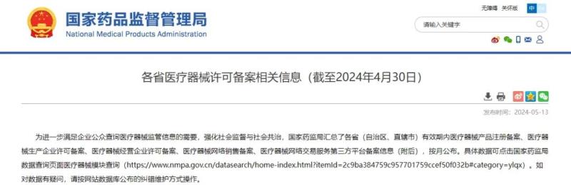 5月13日,國(guó)家藥監(jiān)局公布了截至2024年4月30日各省有效期內(nèi)醫(yī)療器械產(chǎn)品注冊(cè)備案、醫(yī)療器械生產(chǎn)企業(yè)許可備案等信息,老規(guī)矩,金飛鷹小編對(duì)此稍作編輯,標(biāo)注紅色、綠色、黃色的分別為前三甲。