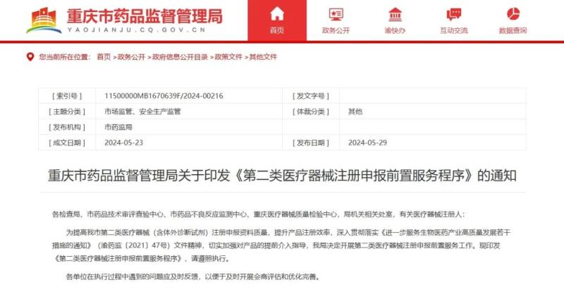 為提高我市第二類醫(yī)療器械(含體外診斷試劑)注冊申報資料質(zhì)量,提升產(chǎn)品注冊效率,深入貫徹落實《進(jìn)一步服務(wù)生物醫(yī)藥產(chǎn)業(yè)高質(zhì)量發(fā)展若干措施的通知》(渝藥監(jiān)〔2021〕47號)文件精神,切實加強對產(chǎn)品的提前介入指導(dǎo),我局決定開展第二類醫(yī)療器械注冊申報前置服務(wù)工作。