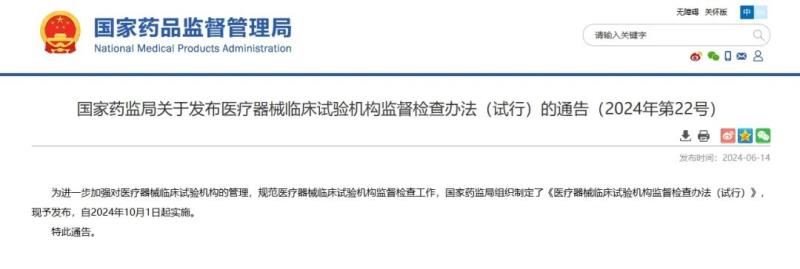 近日,國(guó)家藥監(jiān)局組織發(fā)布《醫(yī)療器械臨床試驗(yàn)機(jī)構(gòu)監(jiān)督檢查辦法(試行)》(以下簡(jiǎn)稱《辦法》),并宣布自2024年10月1日起實(shí)施。