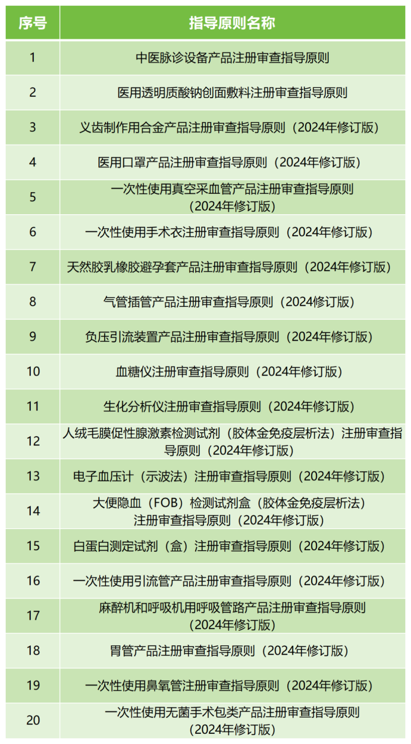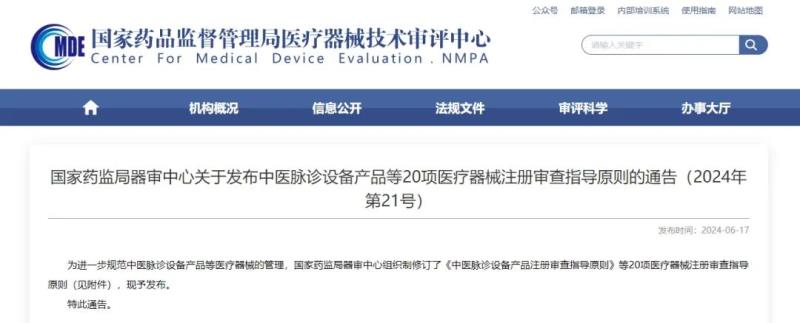 6月17日,國家藥監(jiān)局器審中心發(fā)布《醫(yī)用透明質(zhì)酸鈉創(chuàng)面敷料注冊審查指導(dǎo)原則》《中醫(yī)脈診設(shè)備產(chǎn)品注冊審查指導(dǎo)原則》《醫(yī)用口罩產(chǎn)品注冊審查指導(dǎo)原則(2024年修訂版)》等20項醫(yī)療器械注冊審查指導(dǎo)原則,具體清單如下: