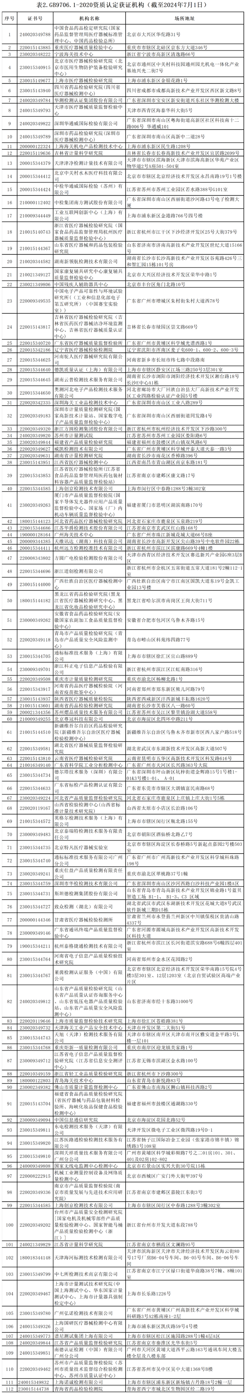 ↑ GB 9706.1-2020資質認定獲證機構明細