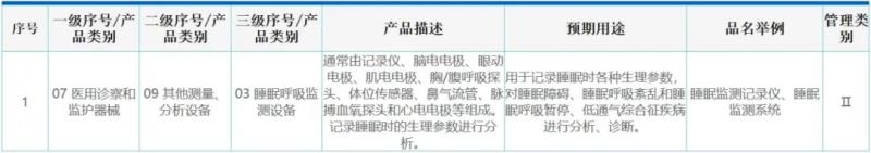 睡眠呼吸監(jiān)測(cè)儀在我國(guó)作為第二類(lèi)醫(yī)療器械管理,其產(chǎn)品描述如下:“通常由記錄儀、腦電電極、眼動(dòng)電極、肌電電極、胸/腹呼吸探頭、體位傳感器、鼻氣流管、脈搏血氧探頭和心電電極等組成。記錄睡眠時(shí)的生理參數(shù)進(jìn)行分析”,預(yù)期用途為“用于記錄睡眠時(shí)各種生理參數(shù),對(duì)睡眠障礙、睡眠呼吸紊亂和睡眠呼吸暫停、低通氣綜合征疾病進(jìn)行分析、診斷”,常見(jiàn)名稱(chēng)還有“睡眠監(jiān)測(cè)記錄儀”“睡眠監(jiān)測(cè)系統(tǒng)”等,分類(lèi)編碼07-09-03。