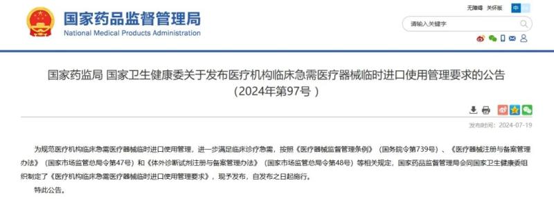 7月19日,國(guó)家藥監(jiān)局《醫(yī)療機(jī)構(gòu)臨床急需醫(yī)療器械臨時(shí)進(jìn)口使用管理要求》(以下簡(jiǎn)稱《管理要求》),并宣布自發(fā)布之日起施行。