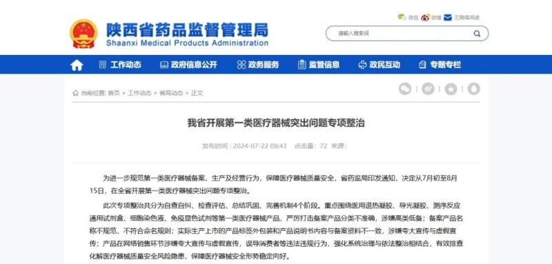 陜西藥監(jiān)局:開展醫(yī)用退熱凝膠等Ⅰ類醫(yī)療器械突出問題專項(xiàng)整治