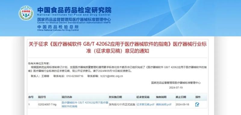 近日,國(guó)家藥監(jiān)局醫(yī)療器械標(biāo)準(zhǔn)管理中心發(fā)布《醫(yī)療器械軟件 GB/T 42062應(yīng)用于醫(yī)療器械軟件的指南》醫(yī)療器械行業(yè)標(biāo)準(zhǔn)的征求意見(jiàn)稿,用以代替YY/T 1406.1-2016《醫(yī)療器械軟件 第1部分:YY/T 0316應(yīng)用于醫(yī)療器械軟件的指南》,并向社會(huì)公開(kāi)征求意見(jiàn)。