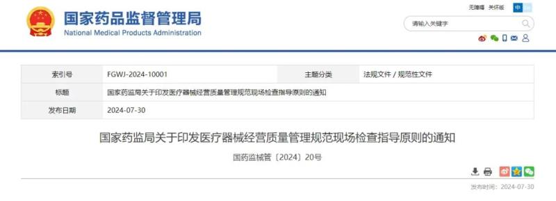 7月30日,國家藥監(jiān)局發(fā)布《醫(yī)療器械經(jīng)營質(zhì)量管理規(guī)范現(xiàn)場檢查指導(dǎo)原則》(以下簡稱《指導(dǎo)原則》),并宣布自發(fā)布之日起施行。原食品藥品監(jiān)管總局印發(fā)的《醫(yī)療器械經(jīng)營質(zhì)量管理規(guī)范現(xiàn)場檢查指導(dǎo)原則》(食藥監(jiān)械監(jiān)〔2015〕239號)同時廢止。