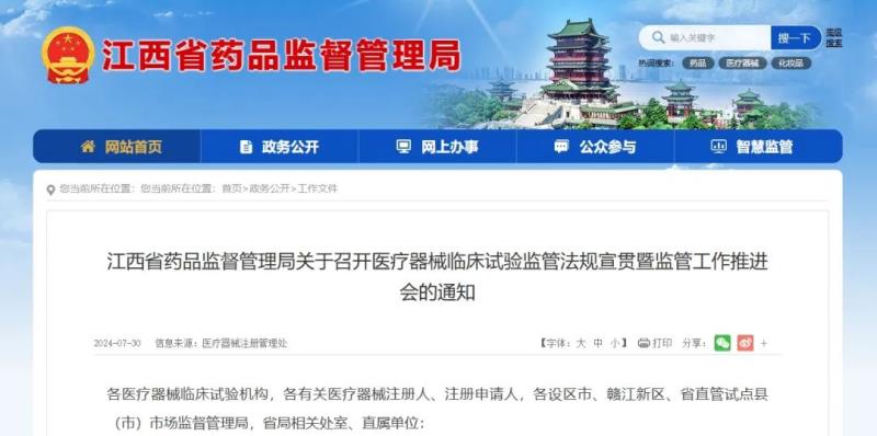 1 會(huì)議時(shí)間與地點(diǎn) (一)會(huì)議時(shí)間:2024年8月6日(周二)下午2點(diǎn)開會(huì),6日上午報(bào)到。 (二)會(huì)議地點(diǎn):南昌綠地華邑酒店(地址:南昌市青山湖區(qū)紫陽大道3333號(hào)高新綠地中心),聯(lián)系電話:0791-82223333。 2 會(huì)議內(nèi)容 (一)局領(lǐng)導(dǎo)講話(線上同步直播); (二)《醫(yī)療器械臨床試驗(yàn)機(jī)構(gòu)監(jiān)督檢查辦法(試行)》及《醫(yī)療器械臨床試驗(yàn)機(jī)構(gòu)監(jiān)督檢查要點(diǎn)及判定原則(試行)》解讀(線上同步直播); (三)醫(yī)療器械臨床試驗(yàn)監(jiān)管工作推進(jìn)會(huì),部署安排2024年度醫(yī)療器械臨床試驗(yàn)機(jī)構(gòu)檢查工作; (四)座談交流; (五)培訓(xùn)考試。