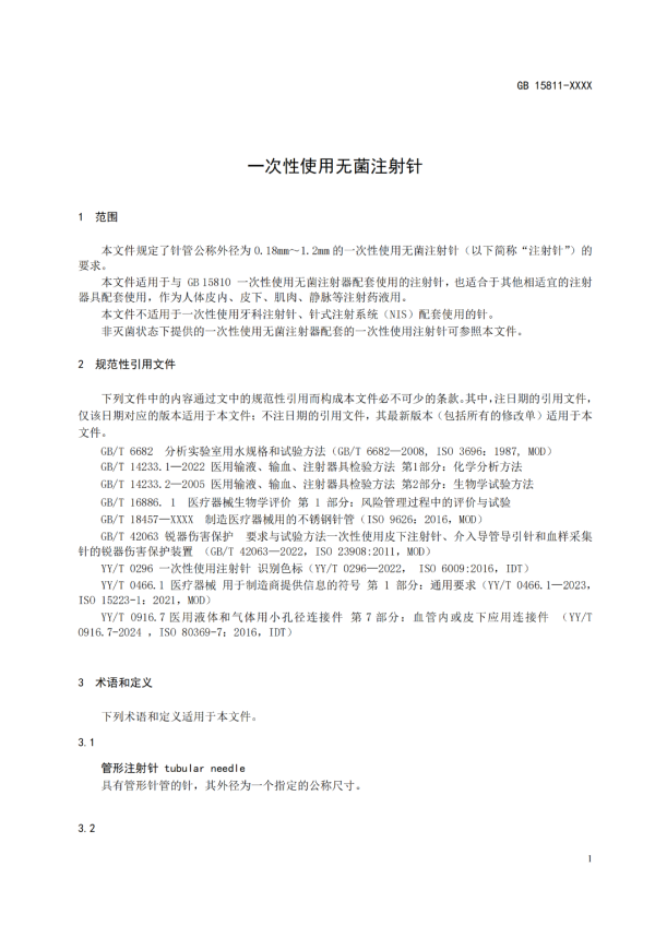 我們將《一次性使用無菌注射針》征求意見稿正文內(nèi)容以圖片形式轉(zhuǎn)載如下: