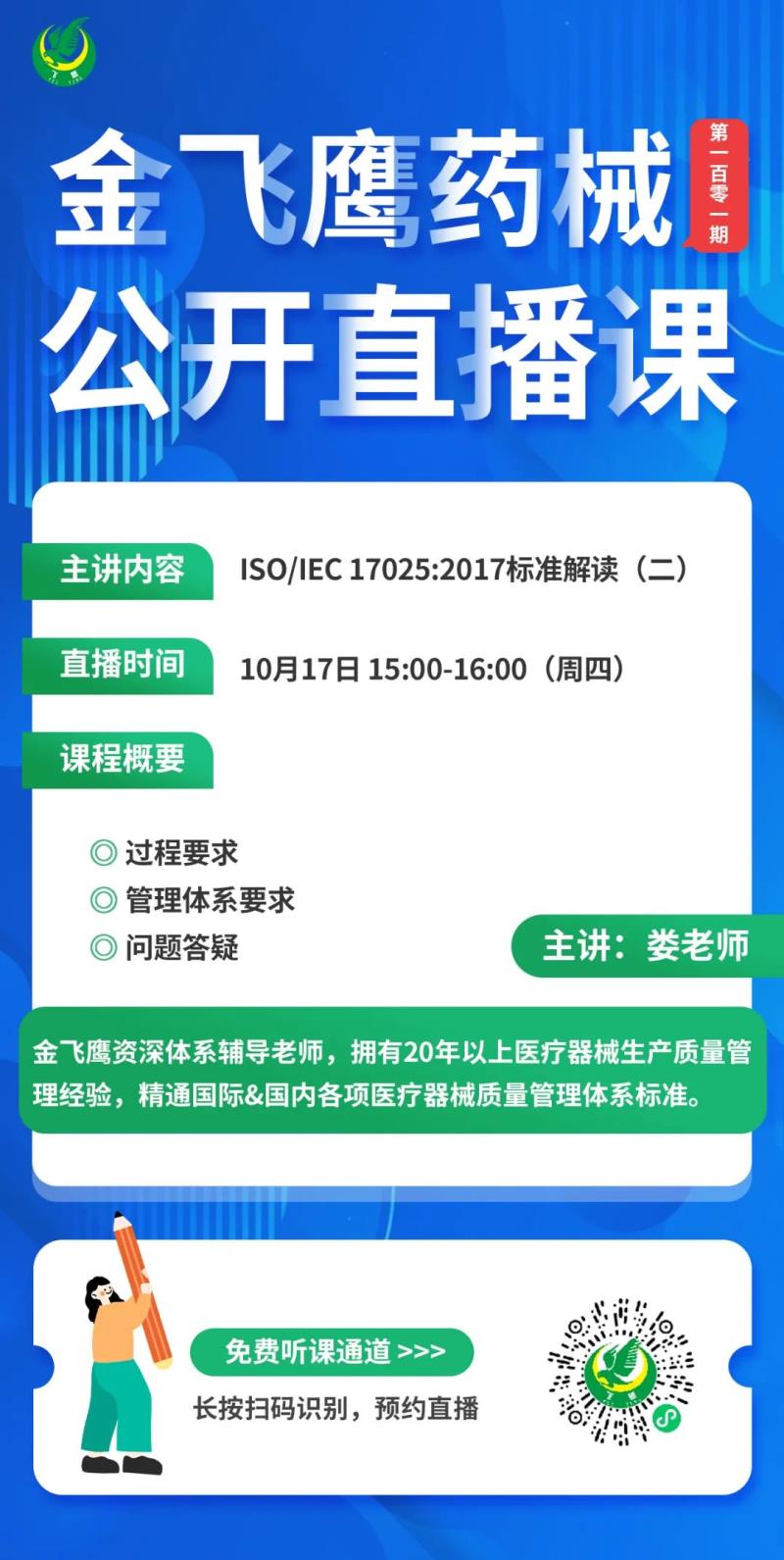 金飛鷹直播培訓(xùn)簡介 金飛鷹直播培訓(xùn),是每周一次的固定培訓(xùn)欄目,優(yōu)選金飛鷹國內(nèi)外資深注冊/項目老師定期為大家講解醫(yī)療器械注冊相關(guān)知識,解答大家在醫(yī)療器械注冊過程中的諸多疑問。 此前我們已為大家?guī)硇掳驷t(yī)療器械生物學(xué)評價標(biāo)準(zhǔn)、新版醫(yī)療器械風(fēng)險管理標(biāo)準(zhǔn)、醫(yī)療器械軟件注冊、新版醫(yī)療器械經(jīng)營質(zhì)量管理規(guī)范等共計100次線上培訓(xùn)課程,有興趣的可點擊視頻號直播回放進(jìn)行查看~另外大家也一定很關(guān)注接下來的培訓(xùn)主題,相關(guān)培訓(xùn)預(yù)告我們會陸續(xù)添加至視頻號,請大家持續(xù)關(guān)注哦!