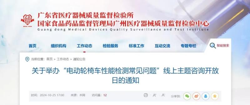 近日,廣東省醫(yī)療器械質(zhì)量監(jiān)督檢驗(yàn)所官網(wǎng)發(fā)布通知,定于10月31日(周四)舉辦“電動(dòng)輪椅車(chē)性能檢測(cè)常見(jiàn)問(wèn)題”線上主題咨詢開(kāi)放日活動(dòng),具體時(shí)間及參會(huì)方式如下:
