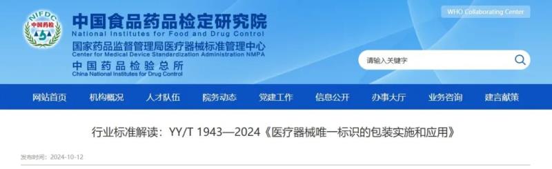 近日,中檢院官網(wǎng)發(fā)布了對(duì)行業(yè)標(biāo)準(zhǔn)YY/T 1943-2024《醫(yī)療器械唯一標(biāo)識(shí)的包裝實(shí)施和應(yīng)用》的解讀,我們將其轉(zhuǎn)載如下: