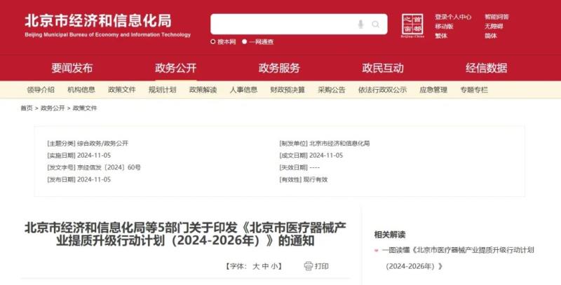近日,北京市經(jīng)濟(jì)和信息化局、北京市藥品監(jiān)督管理局等5部門(mén)聯(lián)合制定了《北京市醫(yī)療器械產(chǎn)業(yè)提質(zhì)升級(jí)行動(dòng)計(jì)劃(2024-2026年)》(以下簡(jiǎn)稱(chēng)《行動(dòng)計(jì)劃》),并予以發(fā)布。