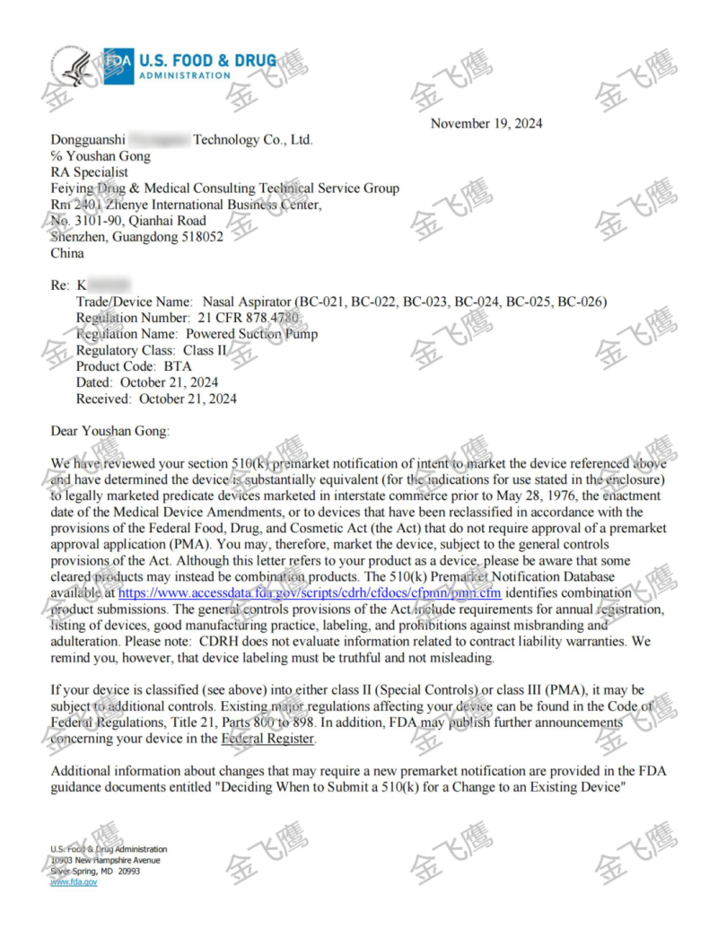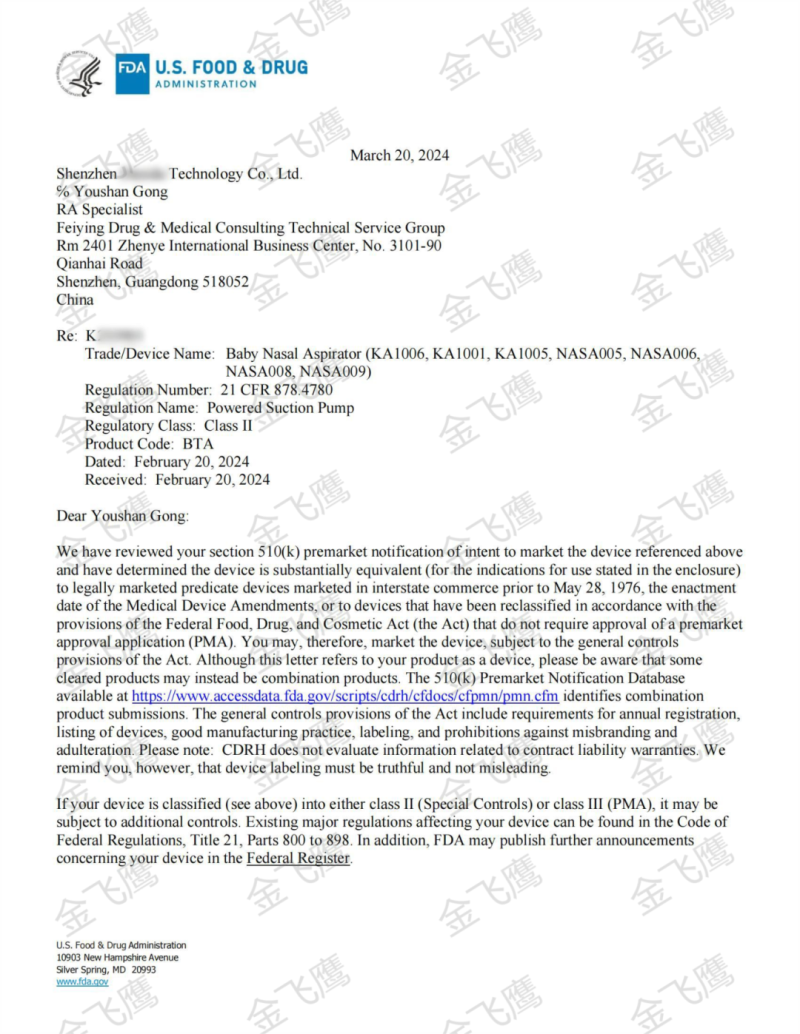 獲批了【嬰兒吸鼻器】的510(k)