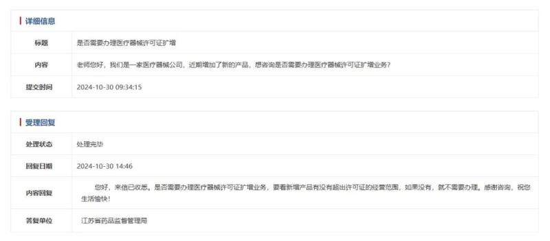根據(jù)江蘇省藥監(jiān)局的答復(fù),是否需要辦理醫(yī)療器械許可證擴(kuò)增業(yè)務(wù),要看新增產(chǎn)品有沒(méi)有超出許可證的經(jīng)營(yíng)范圍,如果沒(méi)有,就不需要辦理。如,現(xiàn)有生產(chǎn)許可證范圍包含了“Ⅱ類09物理治療器械”,新增的產(chǎn)品也是Ⅱ類09物理治療器械,就無(wú)需辦理許可證擴(kuò)增業(yè)務(wù)。