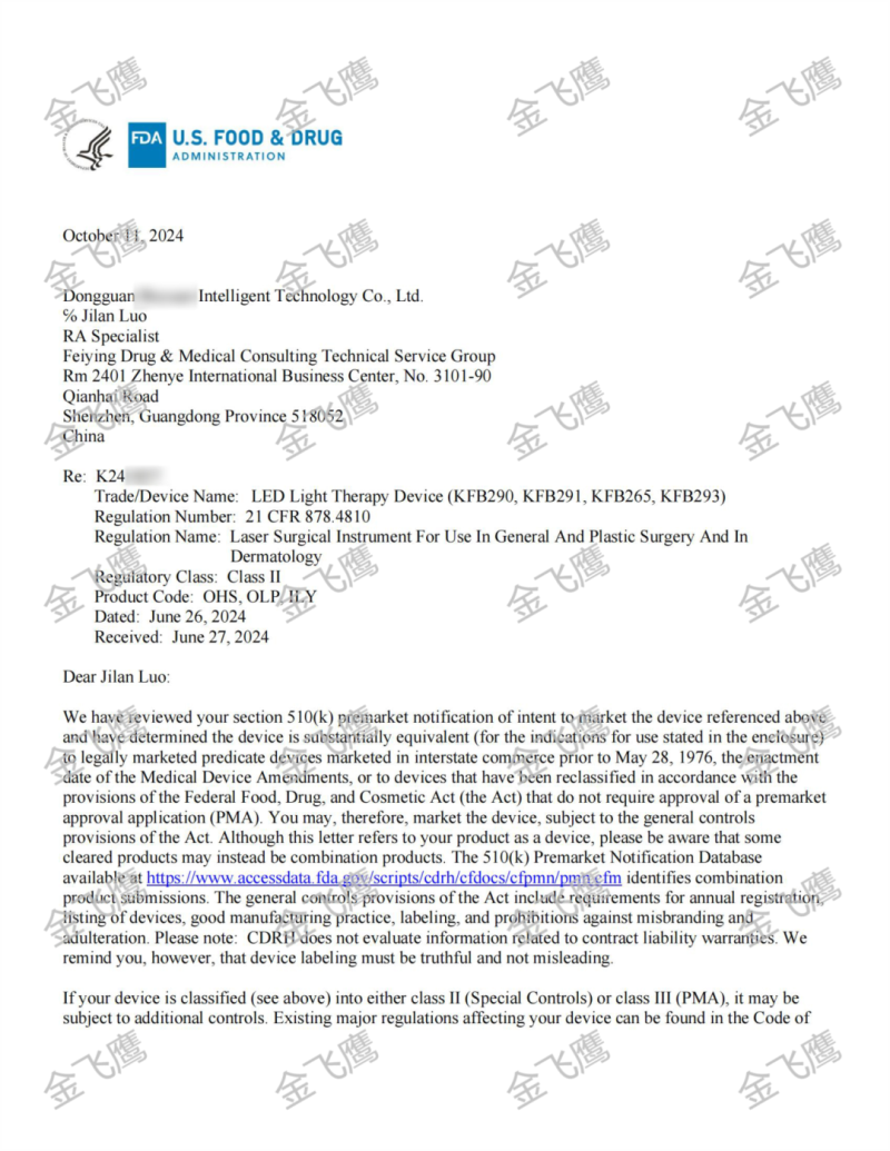 取得雙K號(hào)的案例實(shí)屬首例,但紅藍(lán)光面罩我們此前已積累了不少案例,今年10月,我們輔導(dǎo)的東莞一家企業(yè)成功獲批了紅藍(lán)光面罩510(k),2022年也就此類產(chǎn)品宣傳過(guò)一次。(戳此回顧→紅藍(lán)光面罩)