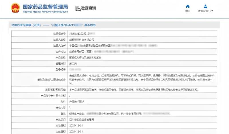 近日,金飛鷹輔導(dǎo)的成都一家企業(yè)成功取得了【頸部運(yùn)動(dòng)評(píng)估及康復(fù)訓(xùn)練系統(tǒng)】的醫(yī)療器械注冊(cè)證,我們從該注冊(cè)證上展示的信息可以看出,這是一款將虛擬現(xiàn)實(shí)技術(shù)與計(jì)算機(jī)視覺(jué)技術(shù)相結(jié)合的產(chǎn)品,預(yù)期用途為“適用于頸型頸椎病、神經(jīng)根型頸椎病、頸部肌肉疼痛、肩周炎及肩袖損傷原因?qū)е骂i痛的患者進(jìn)行頸部康復(fù)訓(xùn)練。”
