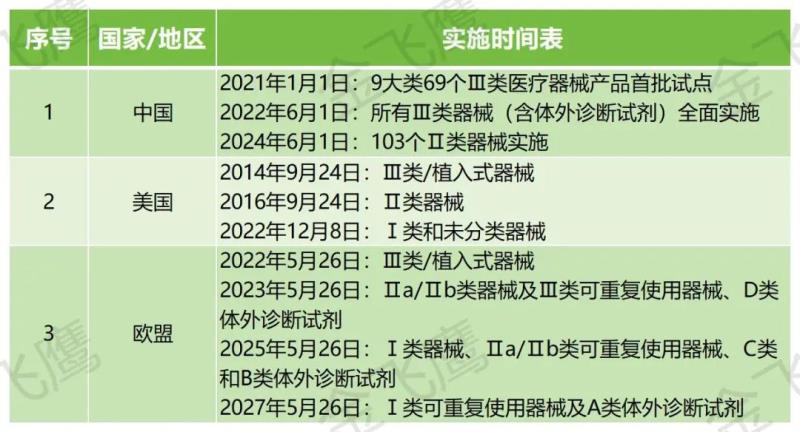 總的來(lái)說(shuō),美國(guó)是全球范圍內(nèi)最早實(shí)施UDI的國(guó)家,2007年,F(xiàn)DA補(bǔ)充法案修訂聯(lián)邦法案519條款,加入f部分,明確FDA實(shí)施UDI的法律基礎(chǔ)。2014年9月,要求Ⅲ類(lèi)/植入式器械實(shí)施UDI,而歐盟和我國(guó)在UDI實(shí)施方面相對(duì)起步較晚,2017年5月,歐盟發(fā)布了醫(yī)療器械法規(guī)(MDR)和體外診斷醫(yī)療器械法規(guī)(IVDR),設(shè)立UDI專(zhuān)章,規(guī)定歐洲醫(yī)療器械數(shù)據(jù)庫(kù)(EUDAMED)相關(guān)建設(shè)內(nèi)容。我國(guó)則在2019年7月確定了UDI試點(diǎn)品種,2021年1第一批產(chǎn)品正式實(shí)施UDI。以下為具體實(shí)施時(shí)間線(xiàn):