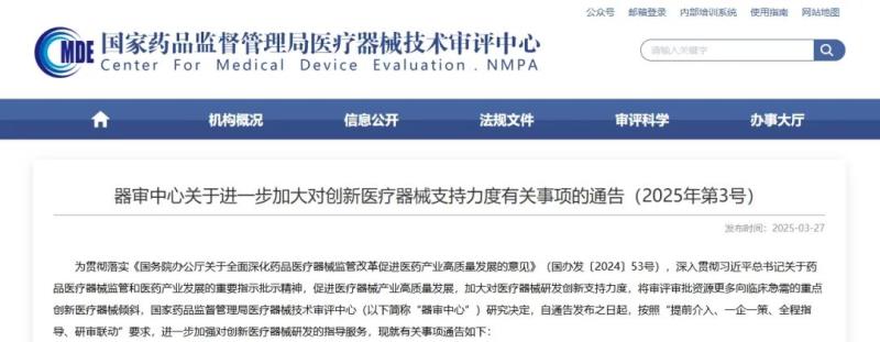 近日,國(guó)家藥監(jiān)局器審中心發(fā)布《關(guān)于進(jìn)一步加大對(duì)創(chuàng)新醫(yī)療器械支持力度有關(guān)事項(xiàng)的通告》,決定自通告發(fā)布之日起,按照“提前介入、一企一策、全程指導(dǎo)、研審聯(lián)動(dòng)”要求,進(jìn)一步加強(qiáng)對(duì)創(chuàng)新醫(yī)療器械研發(fā)的指導(dǎo)服務(wù),以促進(jìn)醫(yī)療器械產(chǎn)業(yè)高質(zhì)量發(fā)展,加大對(duì)醫(yī)療器械研發(fā)創(chuàng)新支持力度,將審評(píng)審批資源更多向臨床急需的重點(diǎn)創(chuàng)新醫(yī)療器械傾斜。有關(guān)事項(xiàng)通告如下: