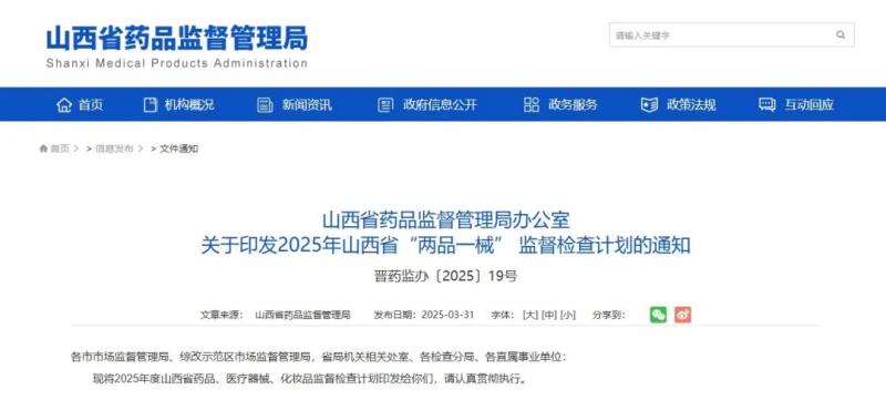 《2025年山西省醫(yī)療器械生產(chǎn)企業(yè)監(jiān)督檢查計(jì)劃》全文如下: