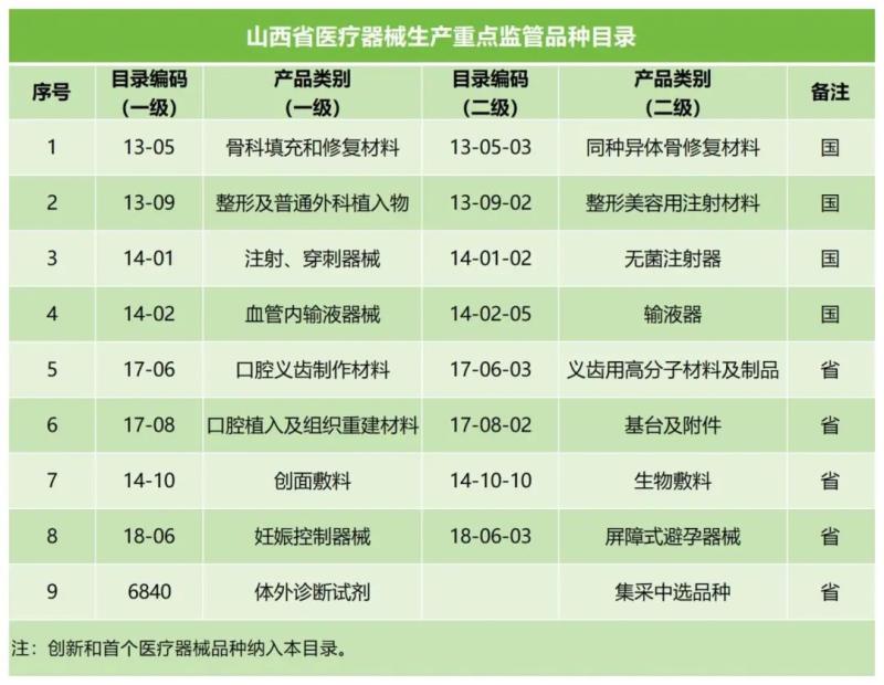 1.國(guó)家和省級(jí)重點(diǎn)監(jiān)管醫(yī)療器械目錄的產(chǎn)品;