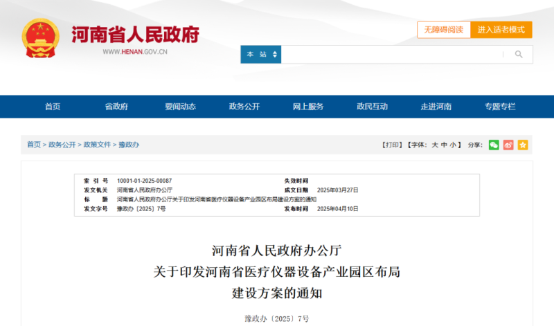 近日,河南省人民政府發(fā)布辦公廳《河南省醫(yī)療儀器設(shè)備產(chǎn)業(yè)園區(qū)布局建設(shè)方案》(以下簡稱《方案》),《方案》明確,將依托國家級(jí)和省級(jí)開發(fā)區(qū),重點(diǎn)規(guī)劃建設(shè)7個(gè)專業(yè)化、高端化醫(yī)療儀器設(shè)備產(chǎn)業(yè)園區(qū),推動(dòng)產(chǎn)業(yè)鏈上下游集聚,構(gòu)建“一區(qū)一園一主業(yè)”的協(xié)同錯(cuò)位發(fā)展格局。