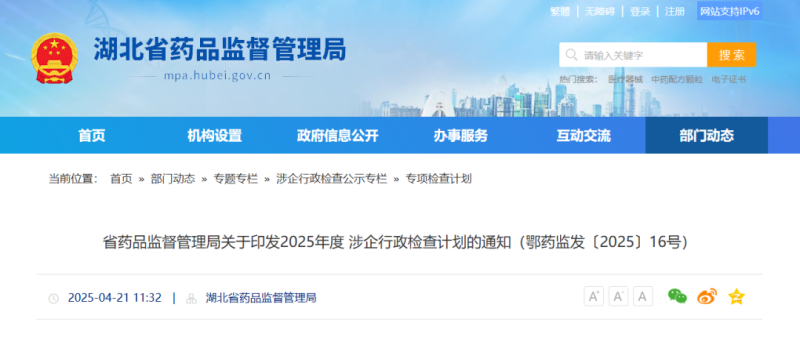 近日,湖北省藥監(jiān)局發(fā)布《2025年度涉企行政檢查計劃的通知》,其中跟醫(yī)療器械有關的檢查計劃具體如下: