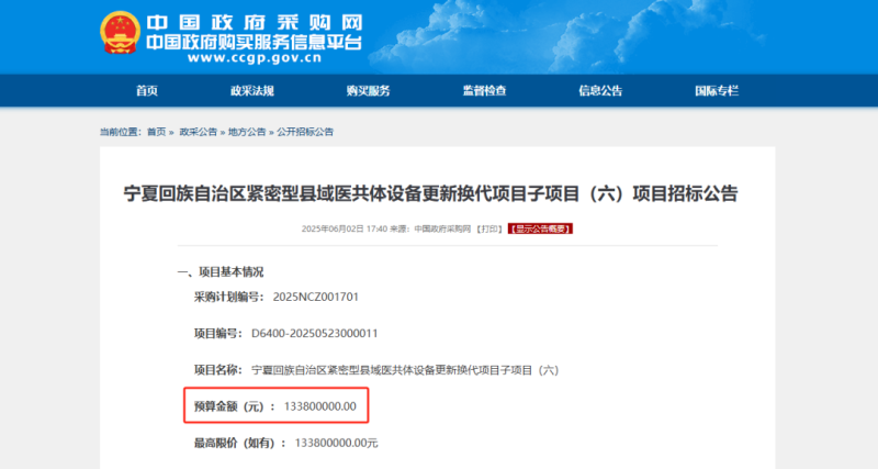 6月2日,中國政府采購網(wǎng)發(fā)布了《寧夏回族自治區(qū)緊密型縣域醫(yī)共體設(shè)備更新?lián)Q代項目子項目(六)項目招標(biāo)公告》,125臺彩色多普勒超聲診斷儀采購大單啟動。