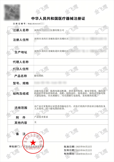 近日,金飛鷹輔導(dǎo)廣東兩家企業(yè)成功取得【腦電圖機】的注冊證,老規(guī)矩,本期文章就跟大家分享一下此類產(chǎn)品注冊的相關(guān)事項。