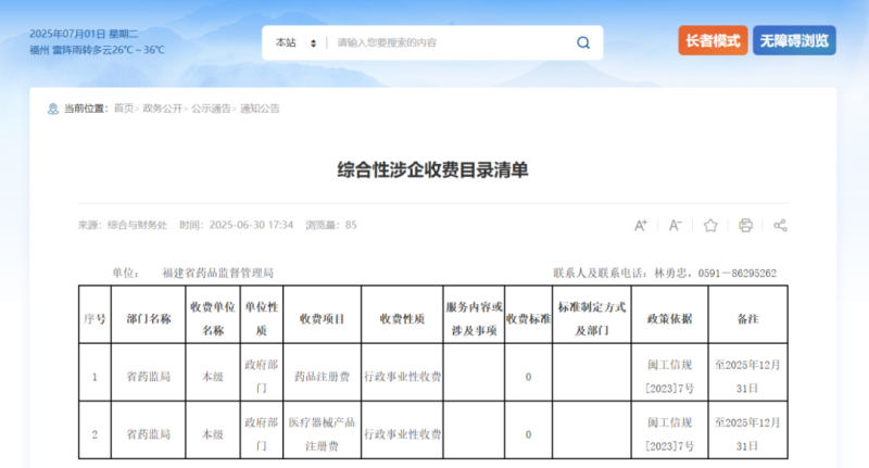 為促進醫(yī)療器械產(chǎn)業(yè)創(chuàng)新發(fā)展,近年來全國多地出臺注冊費減免政策,切實降低企業(yè)成本。6月30日,福建藥監(jiān)局公開《綜合性涉企收費目錄清單》,其中提到,根據(jù)《關(guān)于進一步落實福建省加快生物醫(yī)藥產(chǎn)業(yè)高質(zhì)量發(fā)展的實施方案的若干措施》(閩工信規(guī)[2023]7號 ),醫(yī)療器械產(chǎn)品注冊費為0,有效期至2025年12月31日。