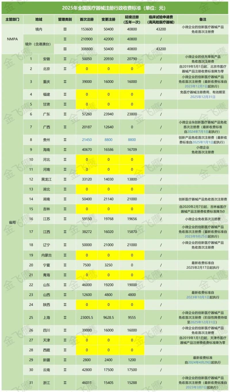 最后依然附上2025最新版【全國各?。ㄊ校┽t(yī)療器械注冊行政收費標準】(根據(jù)各省政務服務網(wǎng)辦事指南及各藥監(jiān)局最新公開的收費標準綜合整理,若有疏漏,歡迎各地朋友指正),具體見下圖,大家記得收藏備用哦!