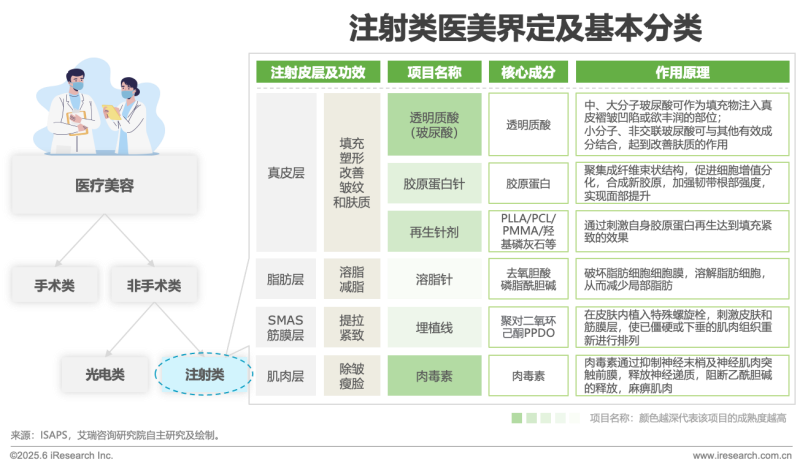 近年來,中國醫(yī)美市場呈現(xiàn)爆發(fā)式增長態(tài)勢,其中以聲光電類和注射類項(xiàng)目最受消費(fèi)者青睞,已成為醫(yī)美消費(fèi)的“雙引擎”。從市場表現(xiàn)來看,聲光電類項(xiàng)目市場份額略高于注射類項(xiàng)目,這類項(xiàng)目主要以緊致抗衰為主,多為無創(chuàng)/微創(chuàng)項(xiàng)目,以更“輕”的手段達(dá)到抗衰的目的吸引了更多消費(fèi)者。但事實(shí)上,注射類項(xiàng)目同樣占據(jù)著舉足輕重的市場地位,為幫助行業(yè)從業(yè)者更深入了解注射類醫(yī)美市場,本期文章我們部分轉(zhuǎn)載了艾瑞咨詢的《中國注射類醫(yī)美行業(yè)研究報告》,以供相關(guān)企業(yè)參考。