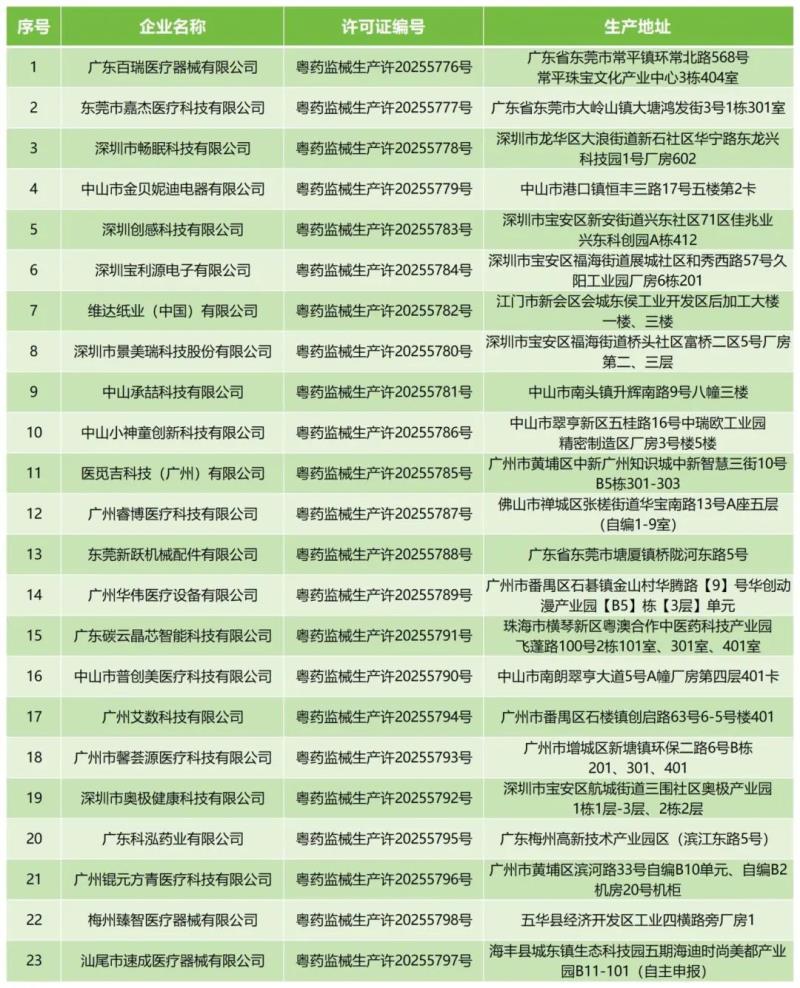 近日,廣東省藥監(jiān)局公布了《2025年6月醫(yī)療器械生產(chǎn)許可證核發(fā)清單》,據(jù)該公開數(shù)據(jù)顯示,2025年6月,廣東百瑞醫(yī)療器械有限公司、深圳市暢眠科技有限公司、維達(dá)紙業(yè)(中國(guó))有限公司、深圳市景美瑞科技股份有限公司等共計(jì)23家企業(yè)新拿到了醫(yī)療器械生產(chǎn)許可證,具體明細(xì)如下: