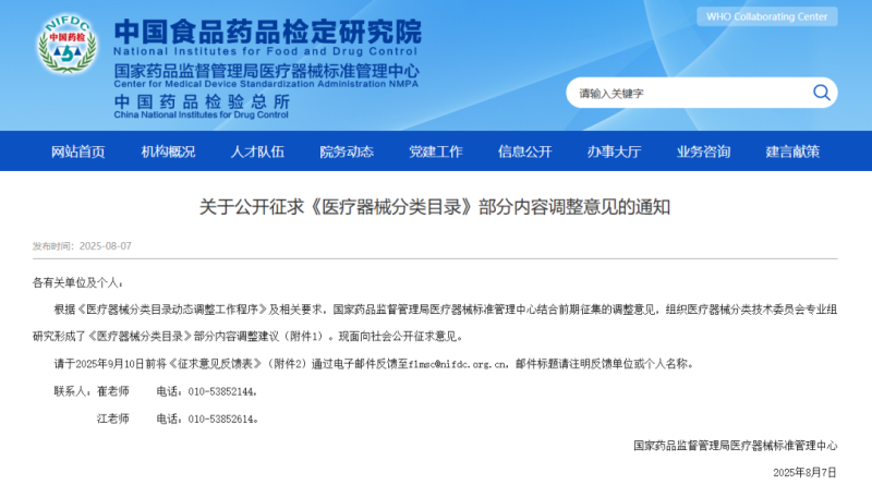8月7日,國家藥品監(jiān)督管理局醫(yī)療器械標(biāo)準(zhǔn)管理中心發(fā)布《醫(yī)療器械分類目錄》部分內(nèi)容調(diào)整建議,并向社會公開征求意見。